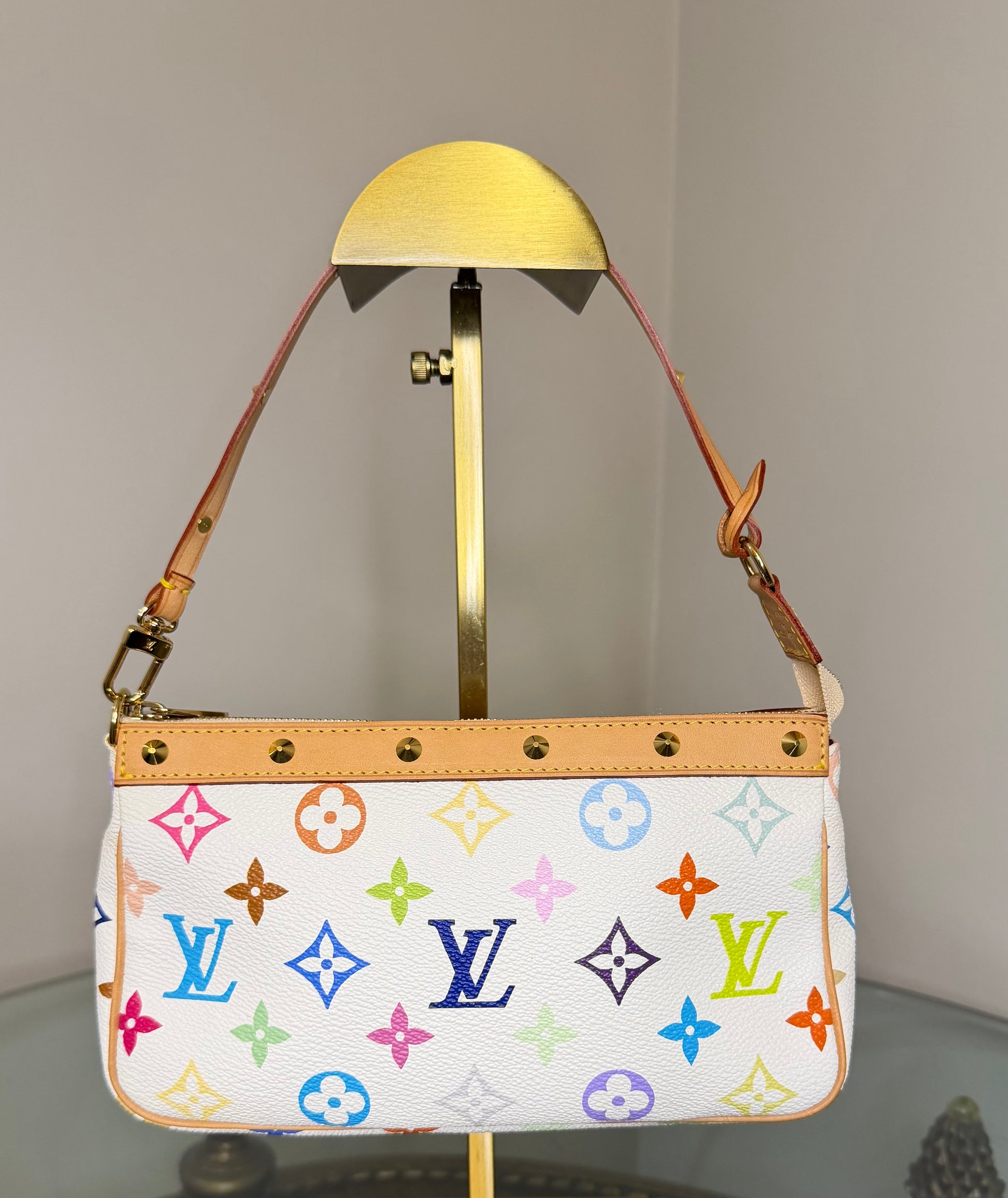 This Louis Vuitton Multicolore Pochette in Blanc is the original early-2000s release, conceived through the historic collaboration between Takashi Murakami and Louis Vuitton, under the creative direction of Marc Jacobs. An authentic artifact of fashion history—not a reissue, not a reinterpretation—but the definitive piece from the era that reshaped modern luxury.